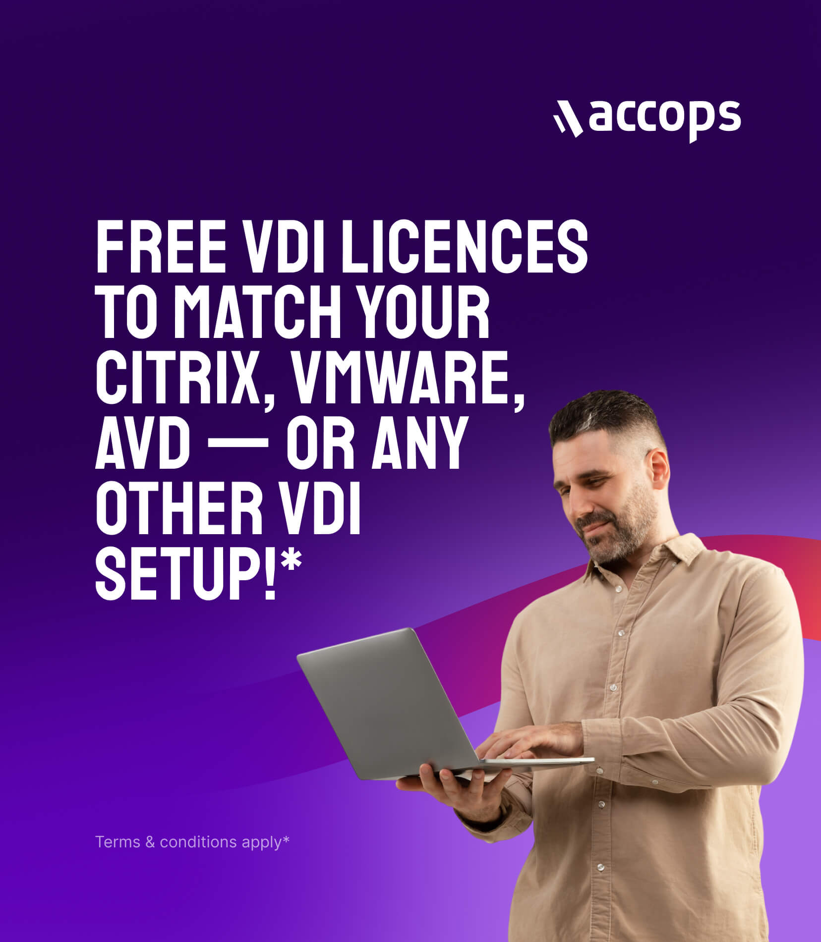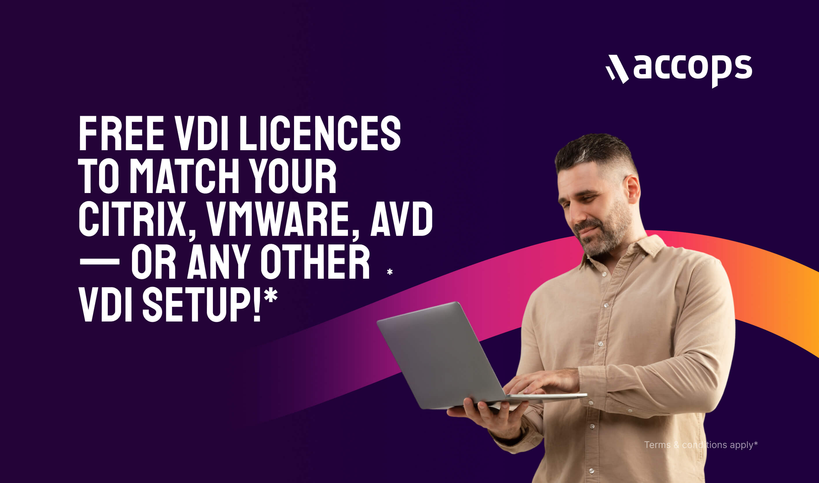Accops will provide free implementation of Accops VDI for your production use cases, matching 100% of your existing VDI deployment.